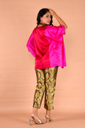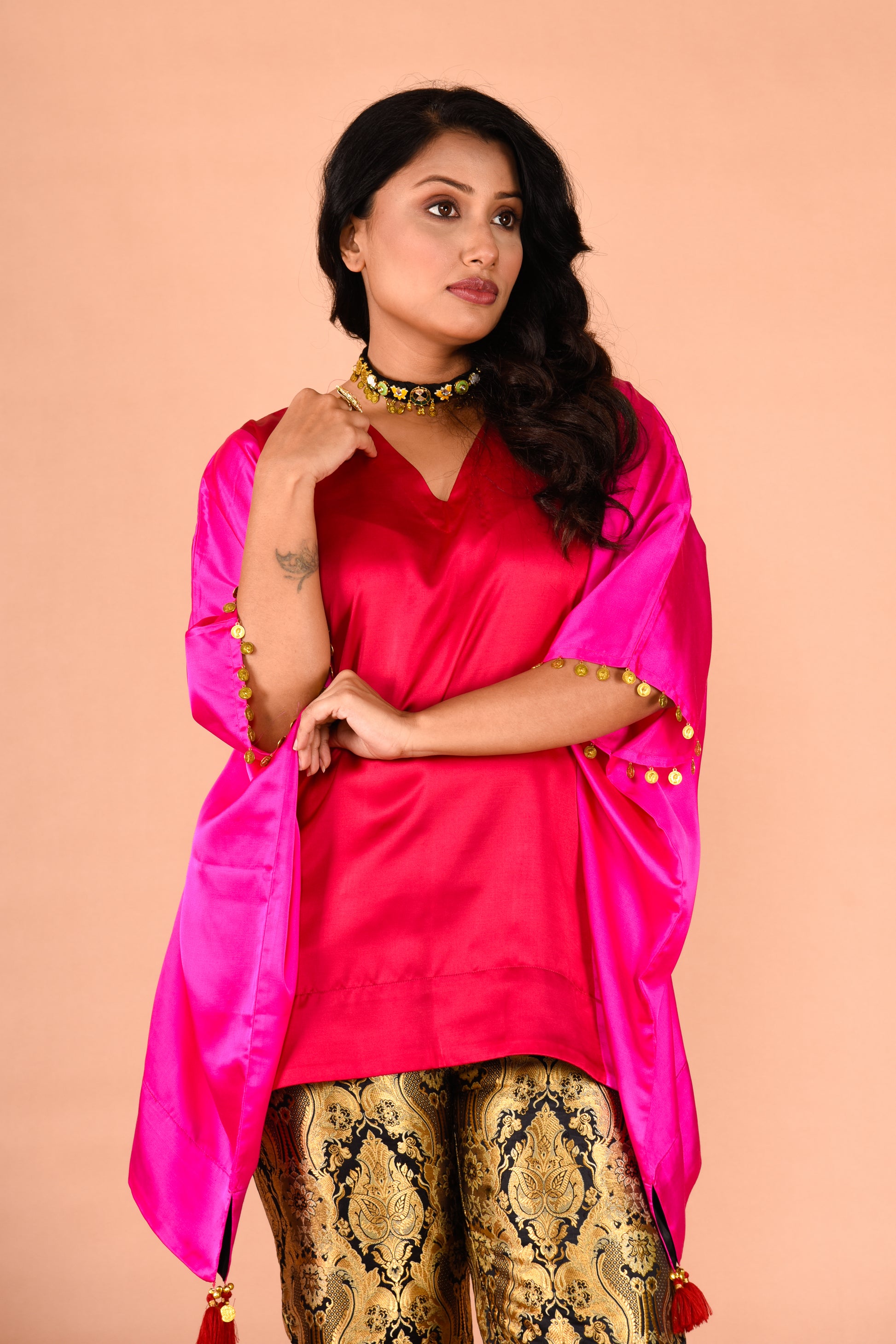 Stylish magenta color block kaftan top with metal coin details on sleeves